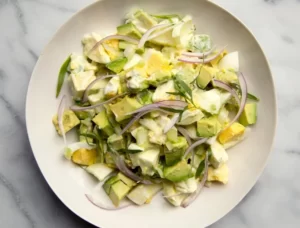 Вы можете также приготовить вкусный, сытный, яркий, красивый и оригинальный “салат с авокадо и яйцом”.