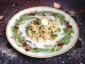 Оливье для диабетика. ГИ – 46,38, ГН – 3,61, ХЕ – 0,84